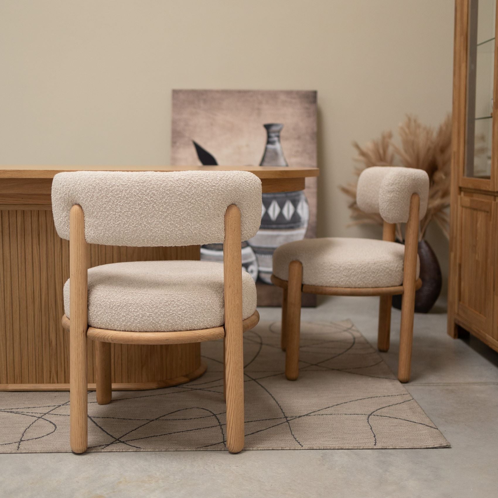 Chaise en bois massif de chêne Lova, revêtement Ecru - Lot de 2 chaises - VESKOR