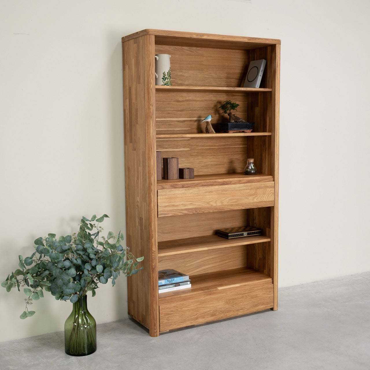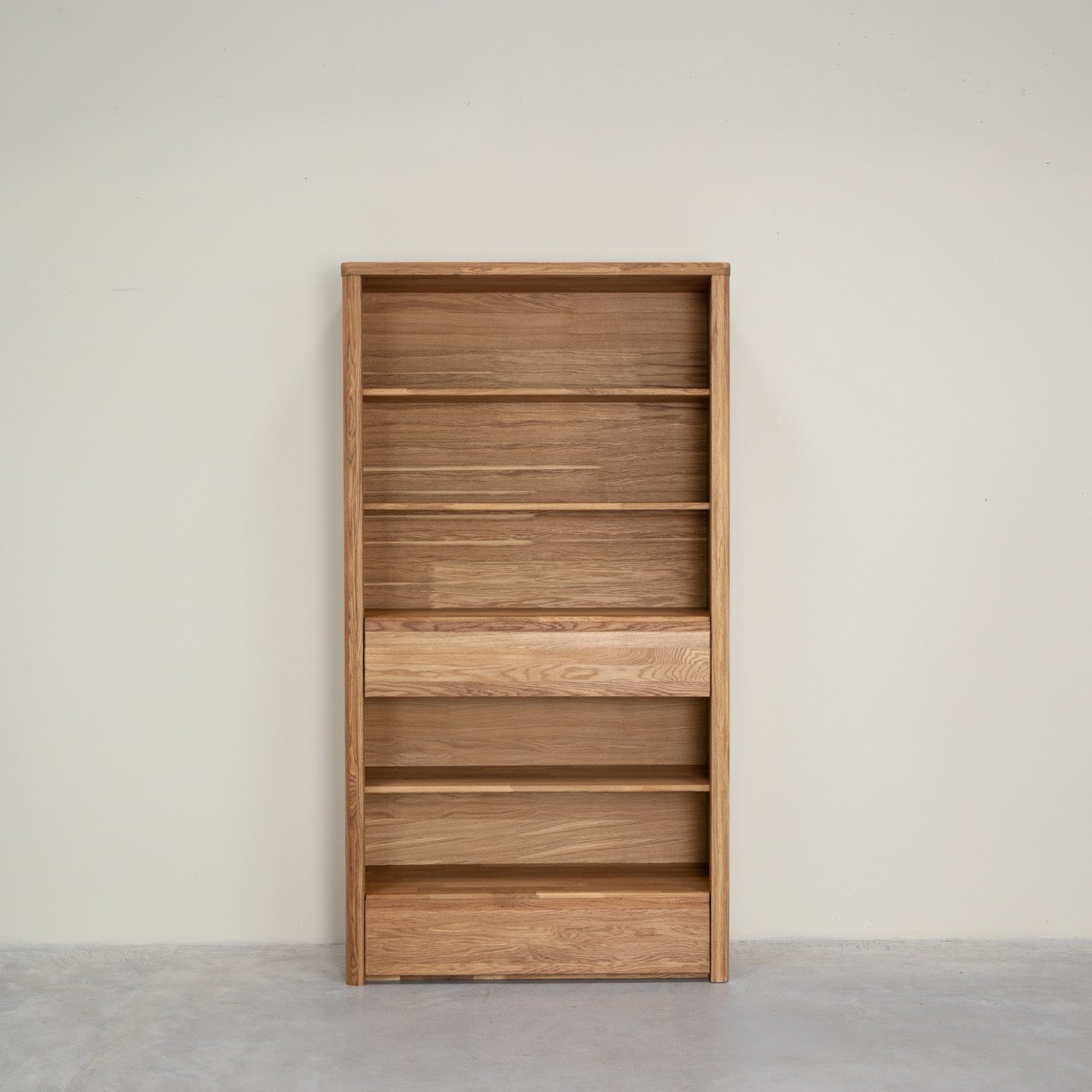 Elsa 2 est une version de la bibliothèque à étagères Elsa 1 dans laquelle nous avons intégré deux tiroirs pour améliorer sa capacité de rangement. Robuste et fonctionnelle, ce meuble accueillera avec élégance tous vos livres et autres indispensables de votre quotidien. Le minimalisme de sa ligne et la durabilité de sa matière en font un indispensable de la déco.