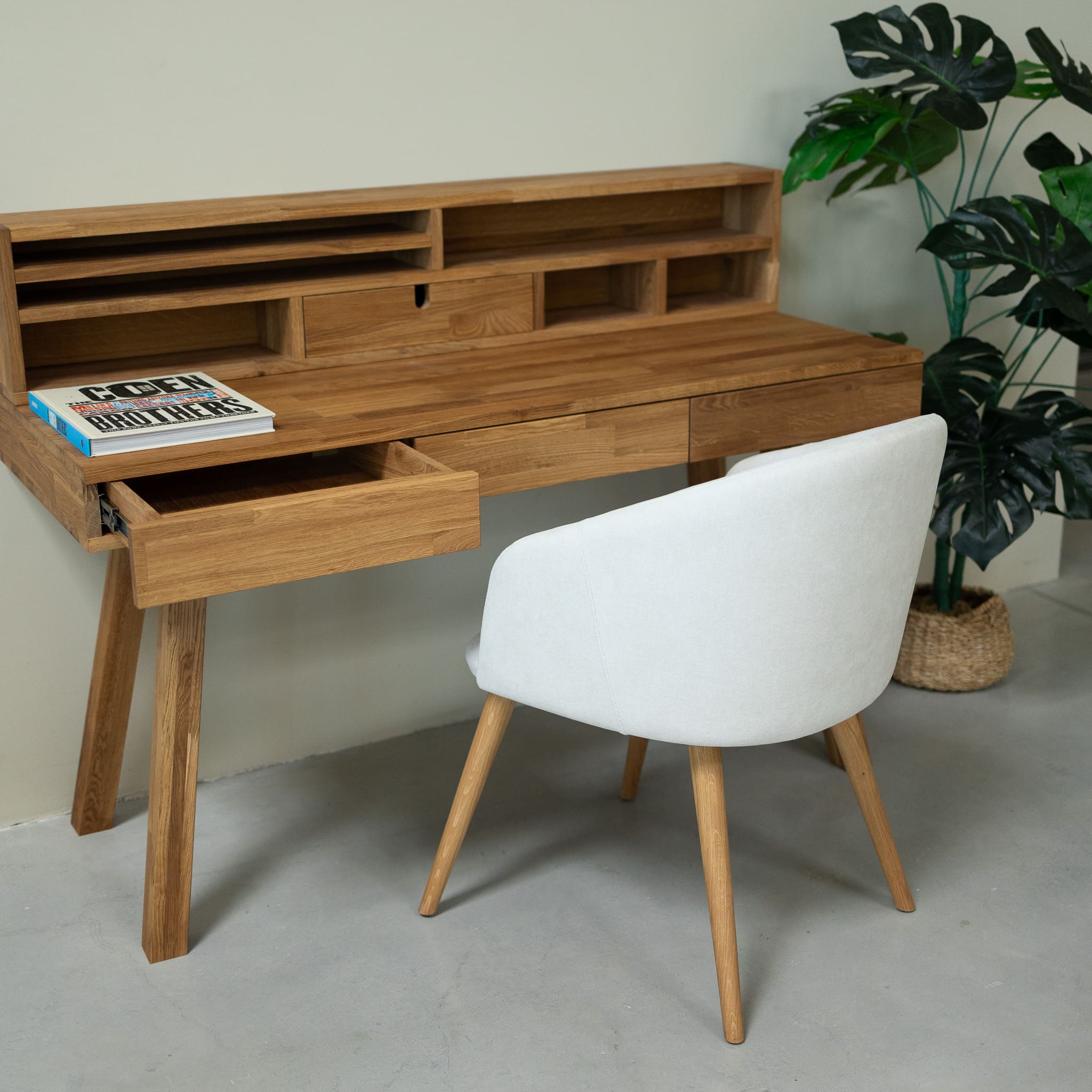 Inspiré du design scandinave, le bureau Escandi 1 vous offre un généreux plateau en chêne massif et deux tiroirs de rangement. Sobre et épuré, ce meuble deviendra un bureau très fonctionnel tout en s’adaptant à n’importe quel intérieur.