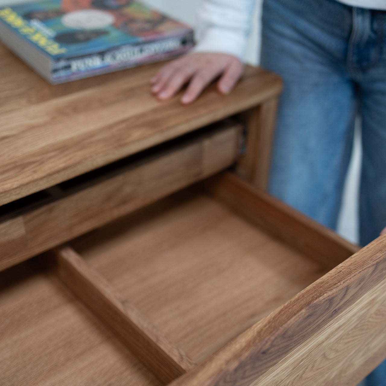 Avec son design minimaliste et intemporel, la commode Elsa est un meuble classique du style nordique. Durable est résistant, elle est dotée de trois tiroirs et d’un tiroir secret supplémentaire permettant d’organiser vos petits objets de valeur. Ce meuble dispose d’un système d’ouverture par pression et de fermeture amortie ce qui permettra d’éviter les chocs et les accidents. Grâce à ses lignes épurées et son charme scandinave, cette commode trouvera parfaitement sa place dans votre chambre.
