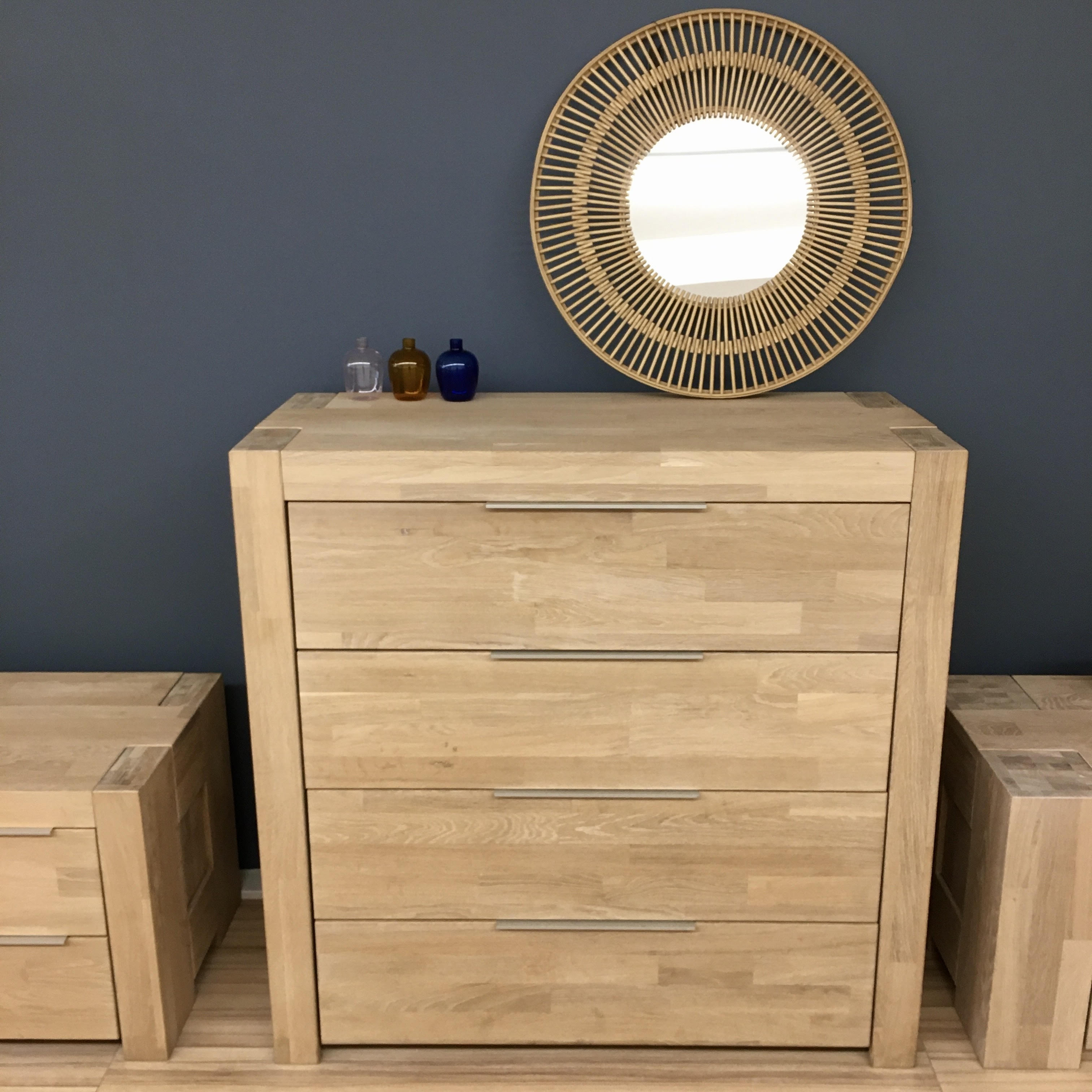 Cette commode en chêne massif Nordic 1 vous séduira par son design nordique et par la robustesse de sa conception. Vous aimerez ses quatre tiroirs spacieux qui vous permettront de ranger vos vêtements et autres affaires personnelles en toute discrétion. Doté de poignées élégantes en métal, ce meuble s’accordera parfaitement avec tous les styles de décoration intérieure.