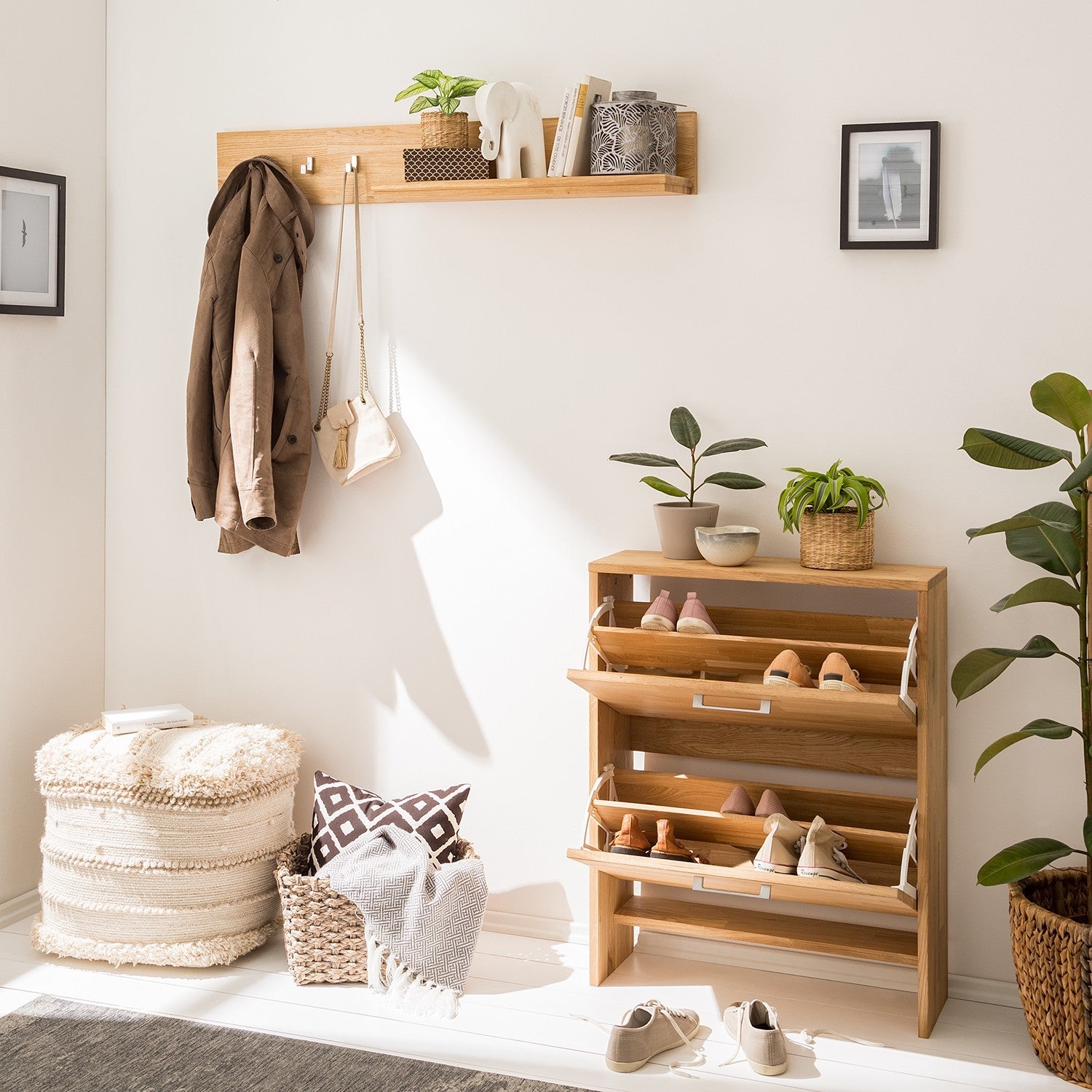 Gain de place assuré avec ce meuble à chaussures en chêne massif Arizona. Très astucieuse, cette armoire possède deux espaces de rangement fermés, séparés intérieurement par une cloison afin de bien organiser vos chaussures. Solution idéale pour les petits espaces, cette étagère trouvera bien sa place dans une entrée aux accents scandinaves.