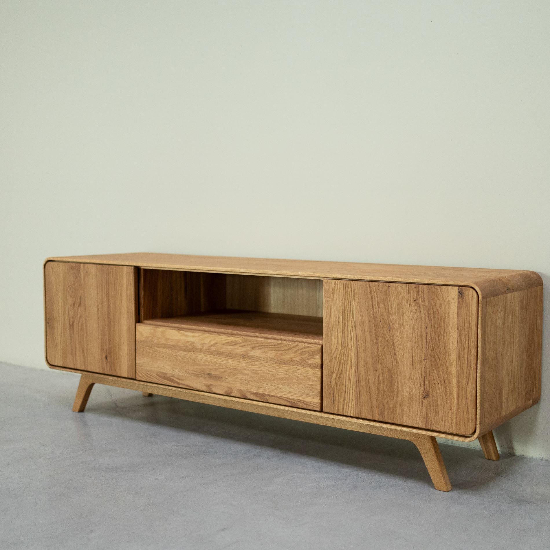Le meuble TV en bois massif de chêne Genève 2 se distingue par son design élégant et ses dimensions généreuses de 180 x 45 x 55 cm, idéales pour les téléviseurs de grande taille. Conçu pour allier style et praticité, il offre plusieurs espaces de rangement spacieux pour organiser vos équipements audiovisuels, accessoires et objets décoratifs. Fabriqué en chêne massif de haute qualité, il garantit robustesse et durabilité tout en apportant une touche chaleureuse et naturelle à votre intérieur. Son esthétique contemporaine et ses lignes épurées en font un choix parfait pour les salons modernes ou les décors au style nordique. Un meuble qui associe fonctionnalité et raffinement pour un espace de vie harmonieux.