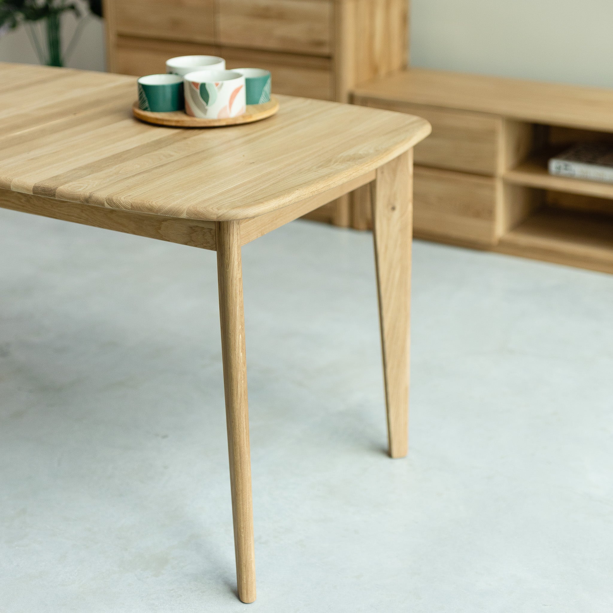 Notre table à manger en chêne massif Monty affiche une sublime combinaison de fonctionnalité et d’élégance. Dotée d’une rallonge, elle vous permettra d’accueillir de nombreux invités lors de vos repas en famille et entre amis tout en s’adaptant aux dimensions de votre intérieur. Vous aimerez son design simple et la pureté de sa ligne. La table est disponible en deux tailles.