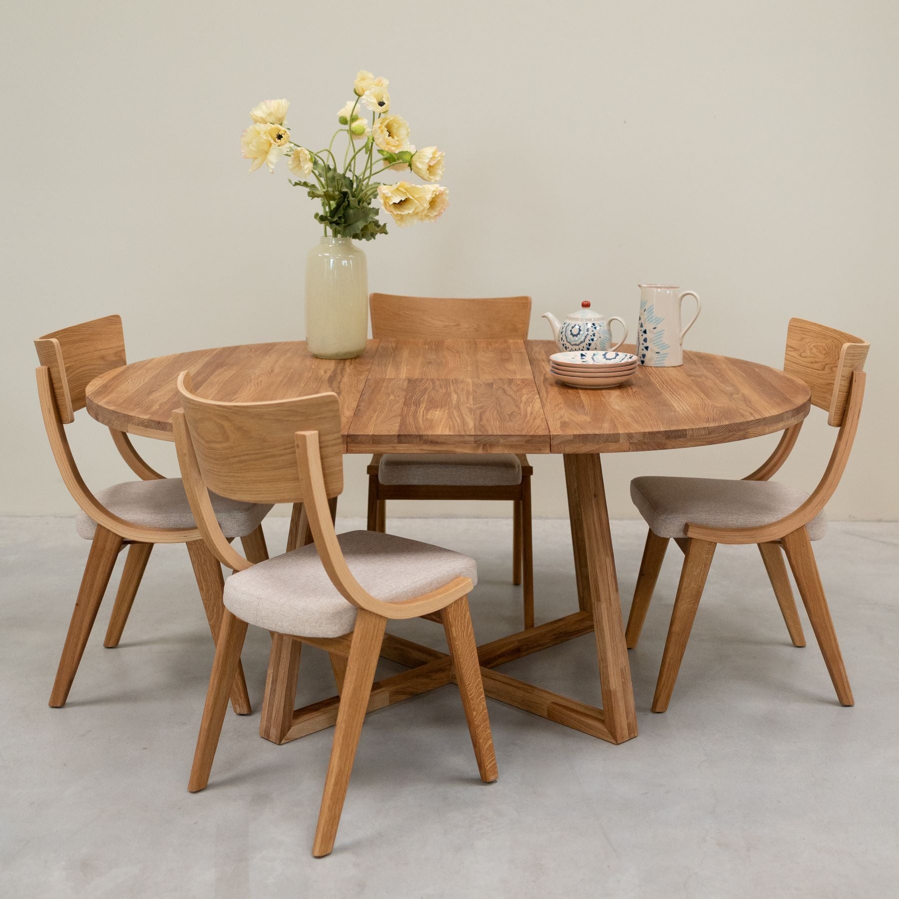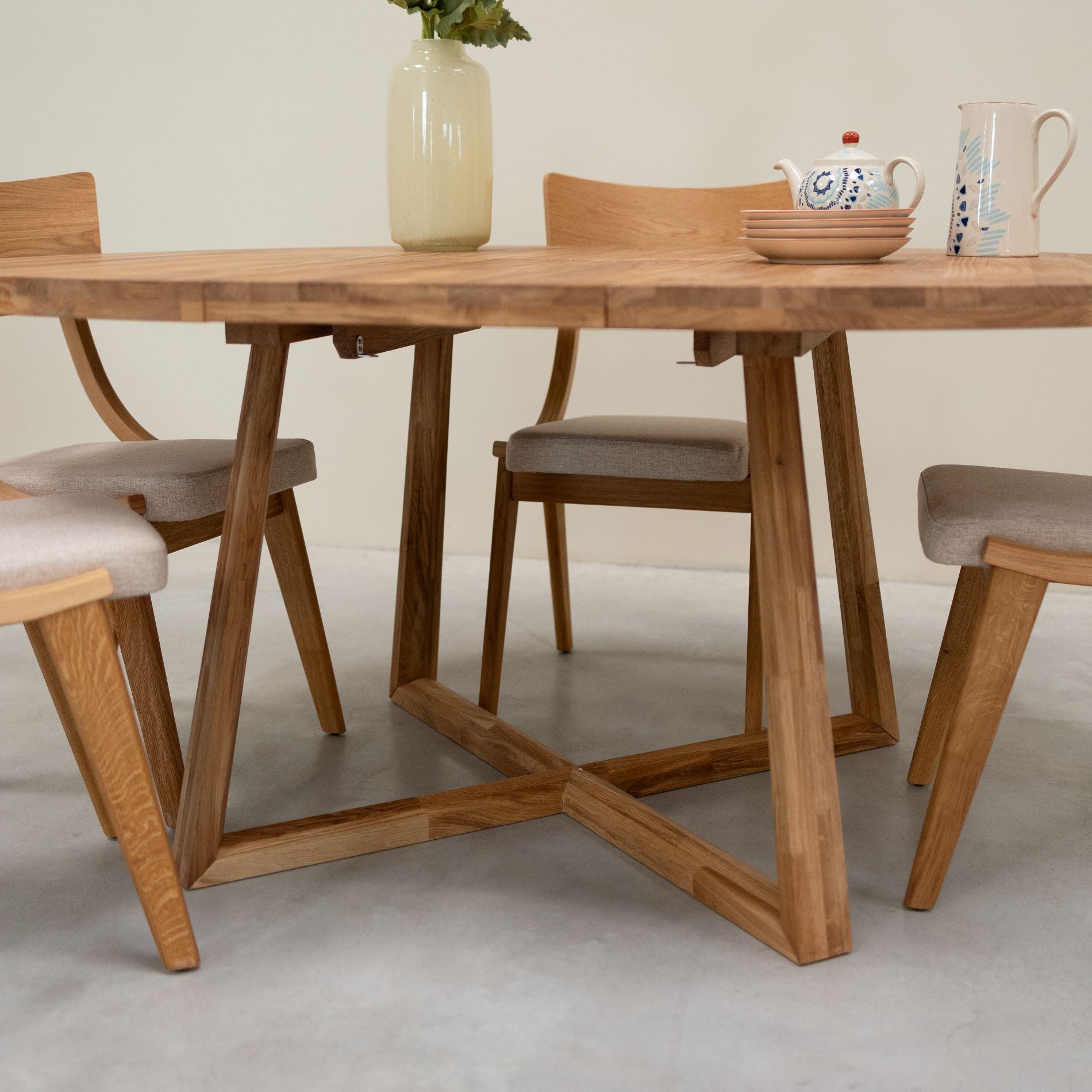 Inspirée du design scandinave, notre table à manger MOBY vous offre tous les atouts du bois de chêne : une belle texture, la robustesse et la durabilité. Grâce à son système de rallonge, vous allez pouvoir accueillir de nombreux invités pour vos repas en famille ou entre amis. Cette élégante table aux pieds croisés s’accordera avec tous les styles de décoration intérieure tout en apportant un charme chaleureux à votre maison.