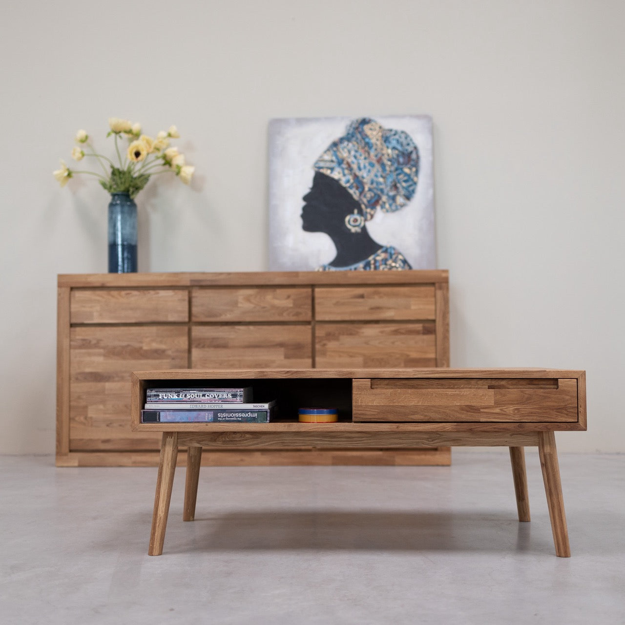 Inspirée des années 50, cette table basse Escandi 8 est une solution idéale pour un usage quotidien. Elle accueillera facilement vos livres, magazines et autres objets de votre vie quotidienne grâce à son généreux plateau en bois, son tiroir et son espace ouvert sous le plateau. A la fois retro et moderne, ce meuble vous aidera à créer un espace chaleureux et convivial tout en s’adaptant à n’importe quel intérieur.