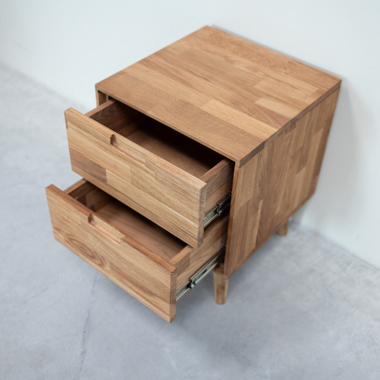 Cette jolie table de nuit Escandi en chêne massif en forme cubique répond à vos principales attentes : élégance, durabilité et fonctionnalité. Dotée de deux tiroirs, elle accueillera vos livres et autres petits objets personnels tout en apportant une touche scandinave chaleureuse à votre espace de détente.