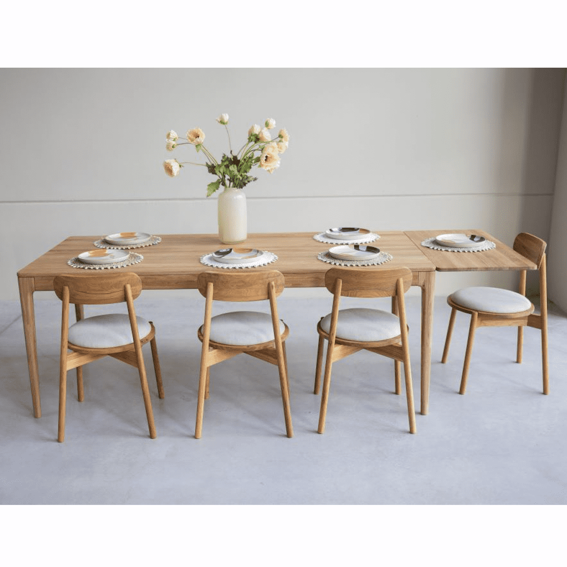 Pour les tables de 140 et 160 cm, une rallonge peut être rangée à l’intérieur de la table, l’autre doit être stockée séparément. Pour la table de 200 cm, les deux rallonges peuvent être rangées à l’intérieur.