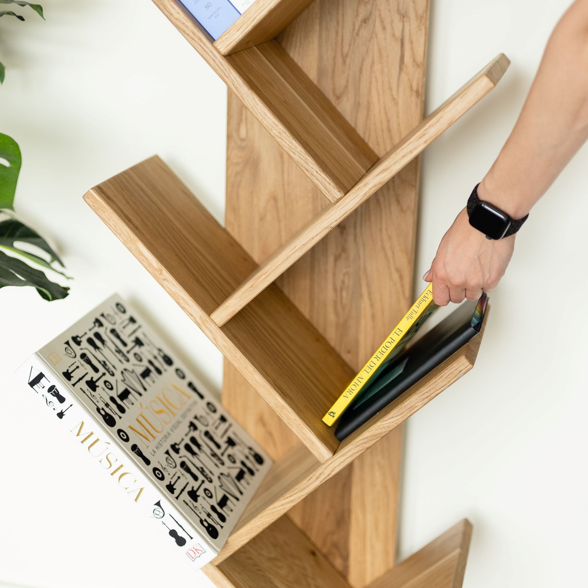 Avec ses dix étagères inclinées, l’étagère Bergen vous offre une généreuse espace de rangement pour vos meilleurs livres. Fabriquée en chêne massif, elle vous séduira par sa conception robuste et son design moderne. Disponible en deux tailles différentes, ce meuble trouvera sa place dans votre salon ou dans votre bureau.