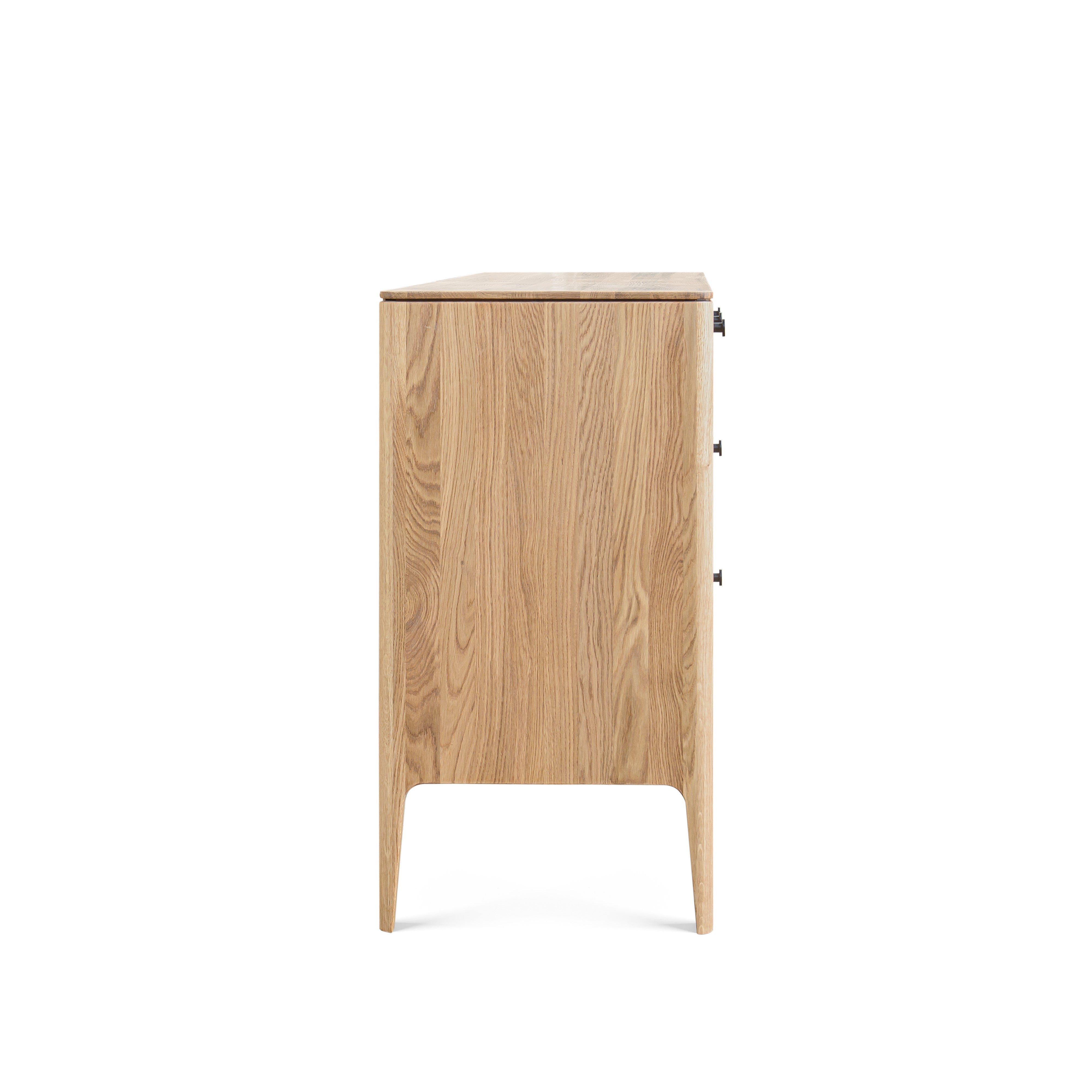 Fabriqué à partir de bois de chêne de qualité supérieure, ce buffet Narvik allie fonctionnalité et élégance. Ses 3 tiroirs et ses compartiments fermés offrent un espace de rangement pratique pour organiser votre linge de table, la vaisselle et d’autres objets de votre vie quotidienne. Grâce à ses lignes épurées et ses pieds raffinés, ce meuble apportera une touche de sophistication à votre intérieur.