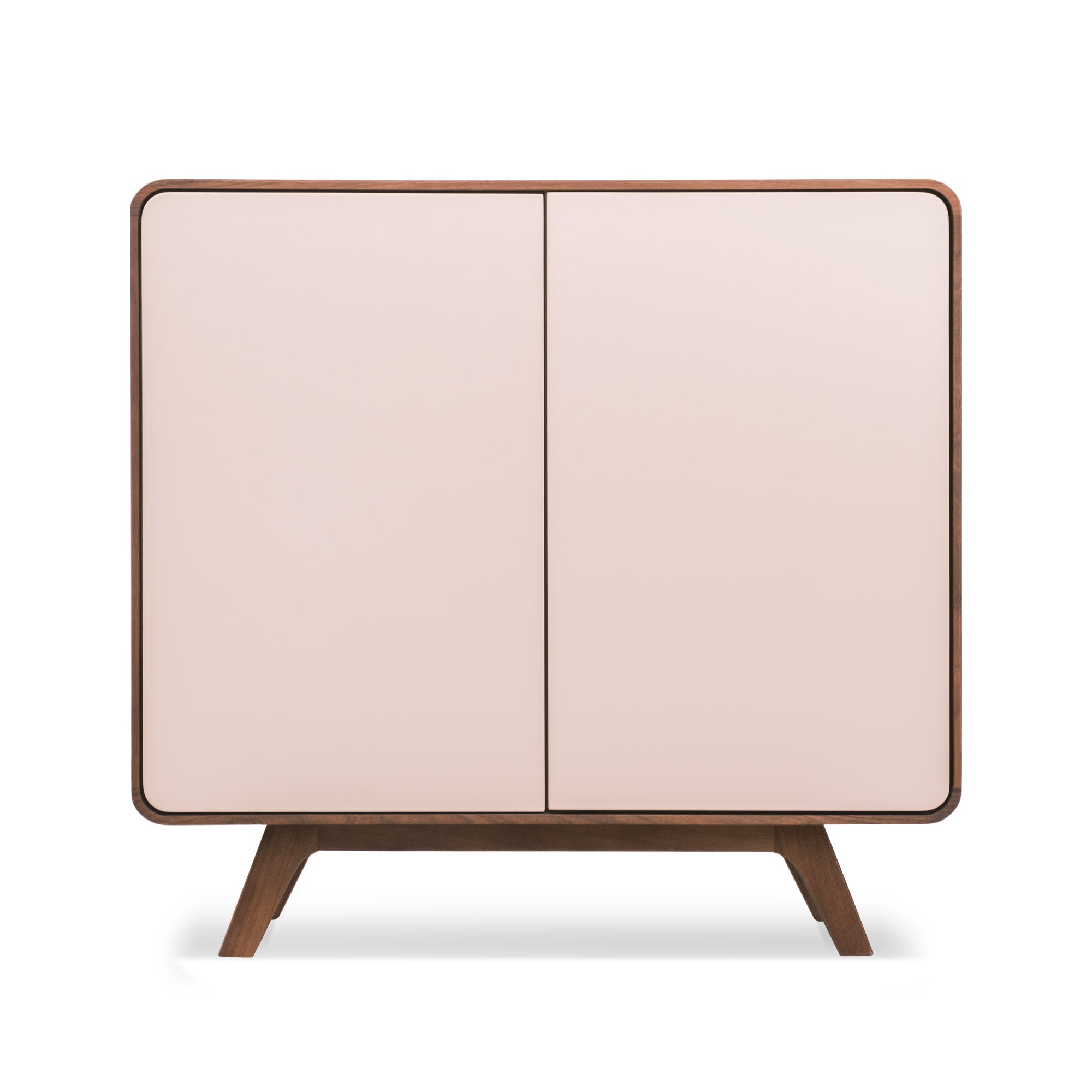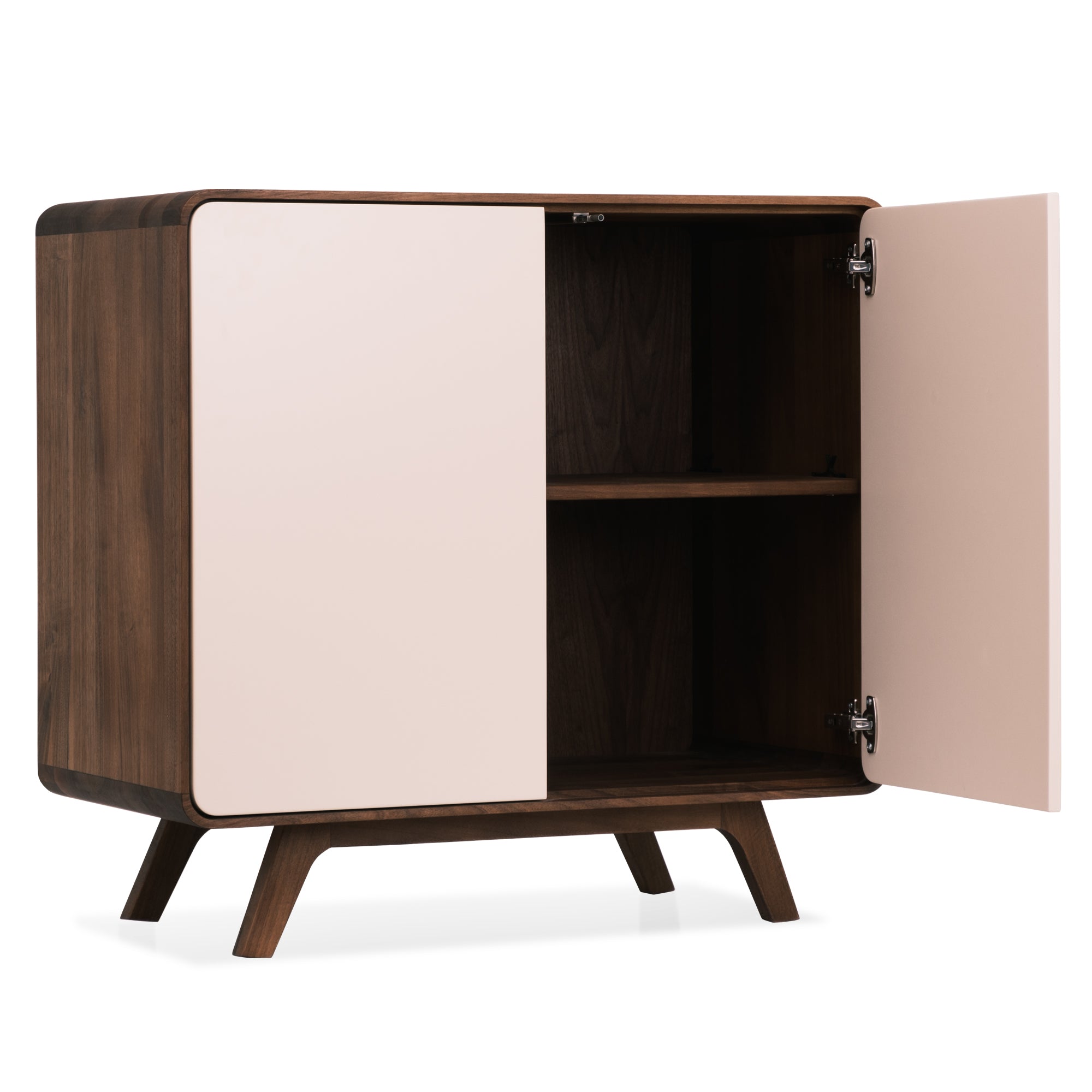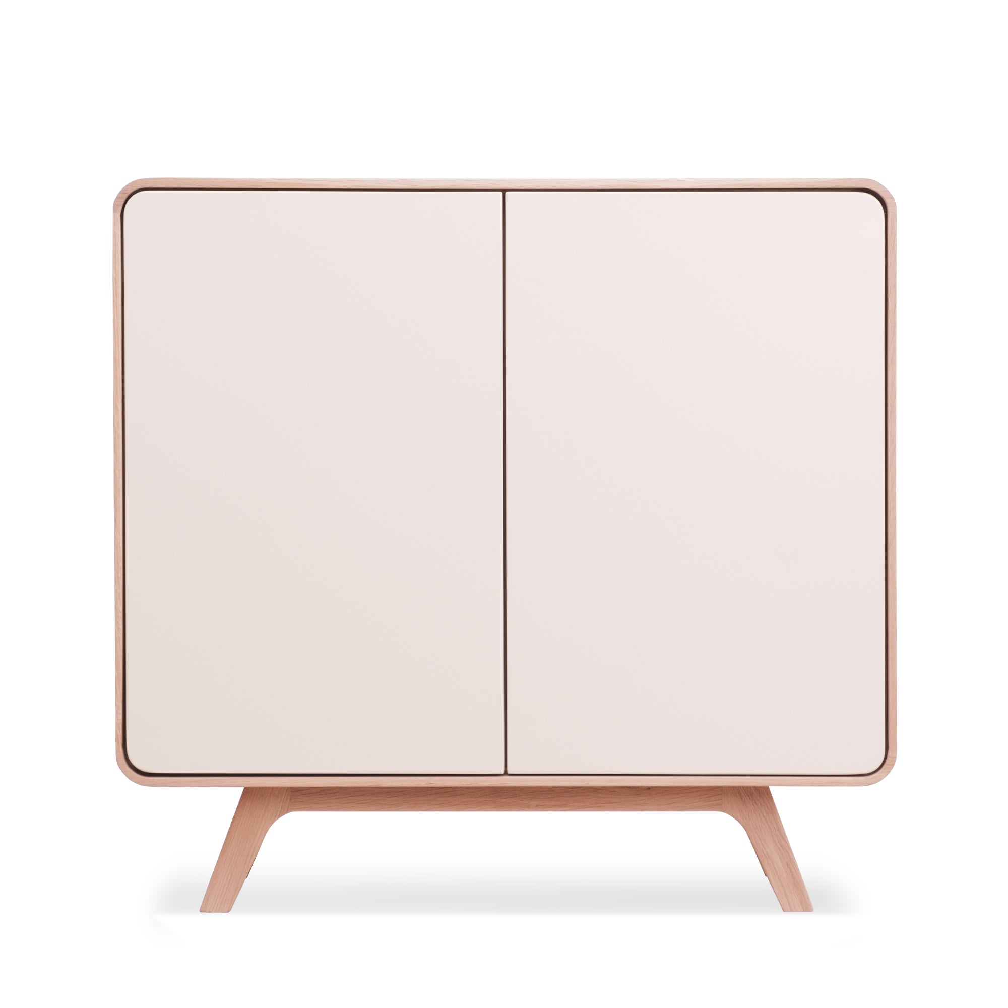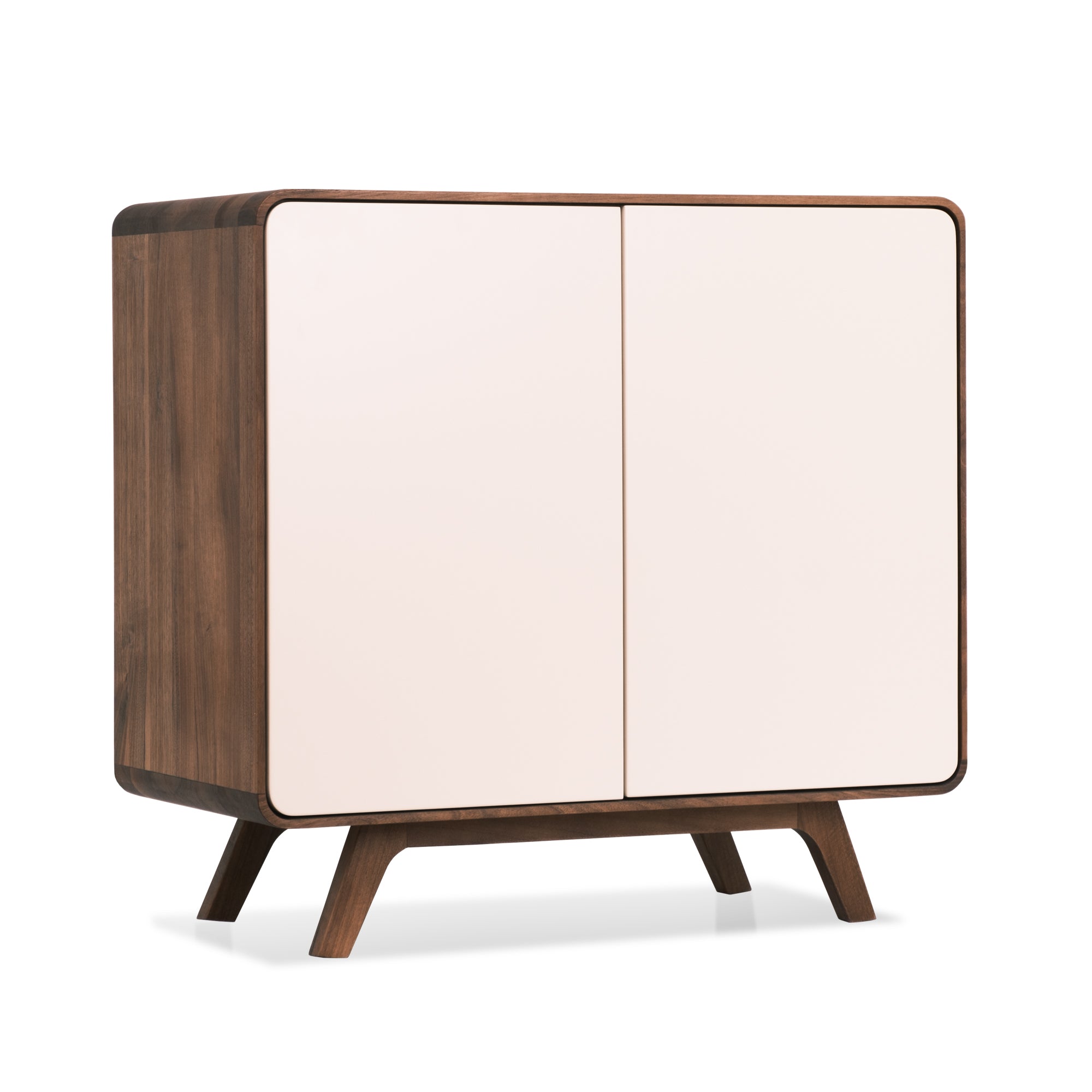 Matière : bois massif de chêne ou de noyer, façade en MDF laqué blanc.