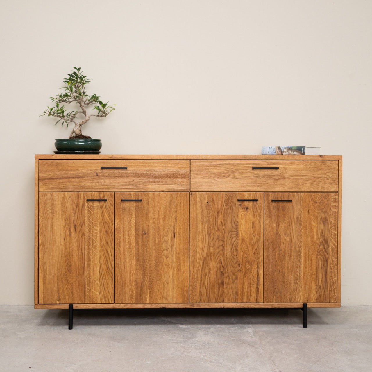 Disponible en bois de chêne ou de noyer, le buffet TV Normandie combine la beauté naturelle et fonctionnalité durable. Doté de nombreux compartiments spacieux, ce meuble offre un espace de rangement généreux pour votre vaisselle, linge de tables et autres essentiels. Avec don design à la fois classique et contemporain, ce buffet est non seulement un meuble pratique, mais aussi une pièce élégante qui ajoutera une touche de style industriel à votre salon ou salle à manger.