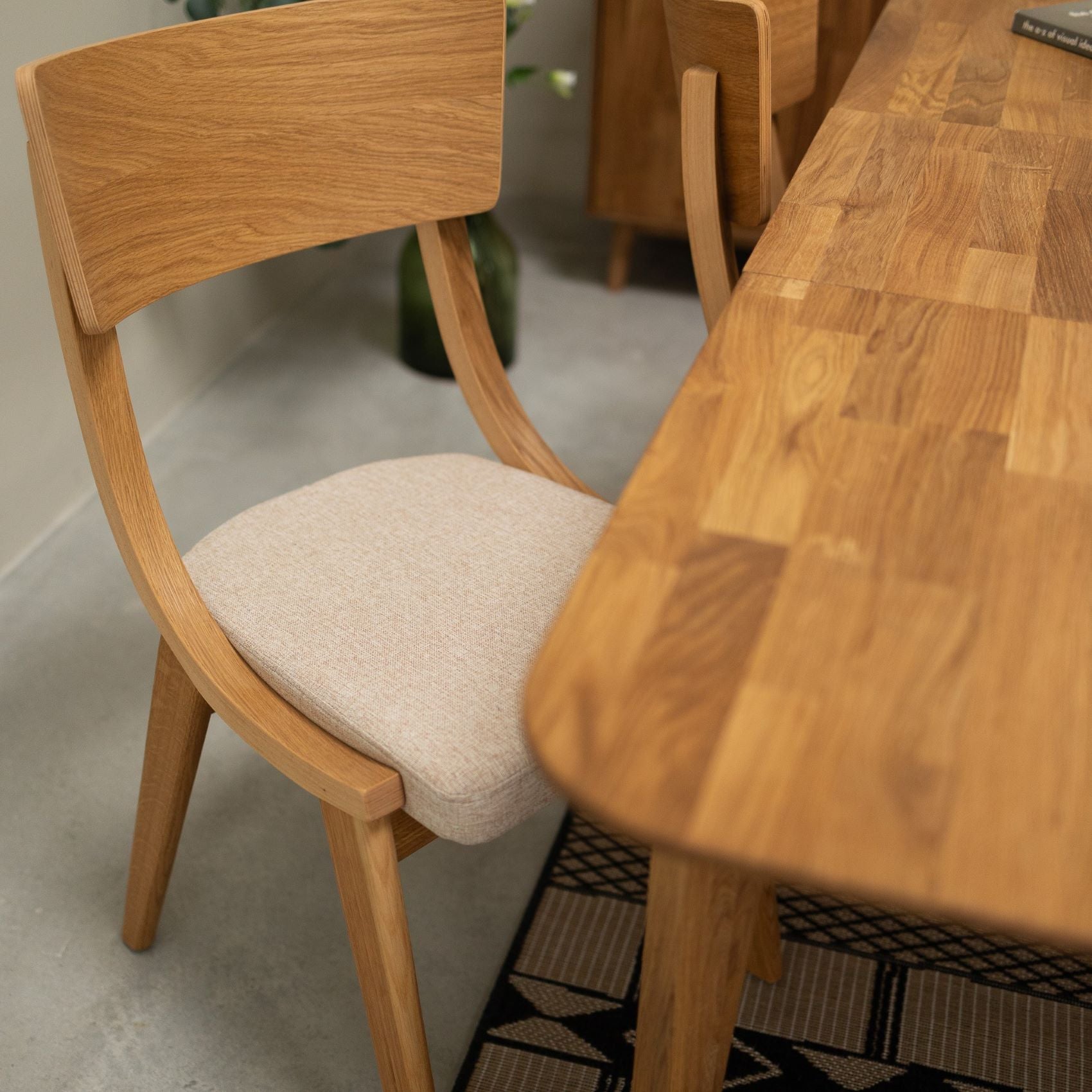 Fabriquée en bois massif de chêne, la chaise Lucas est une pièce à la fois esthétique et polyvalente. Sa structure robuste en chêne assure une durabilité exceptionnelle, tandis que son design raffiné s'harmonise avec divers styles d'intérieur. Cette chaise est une solution idéale pour un usage quotidien.