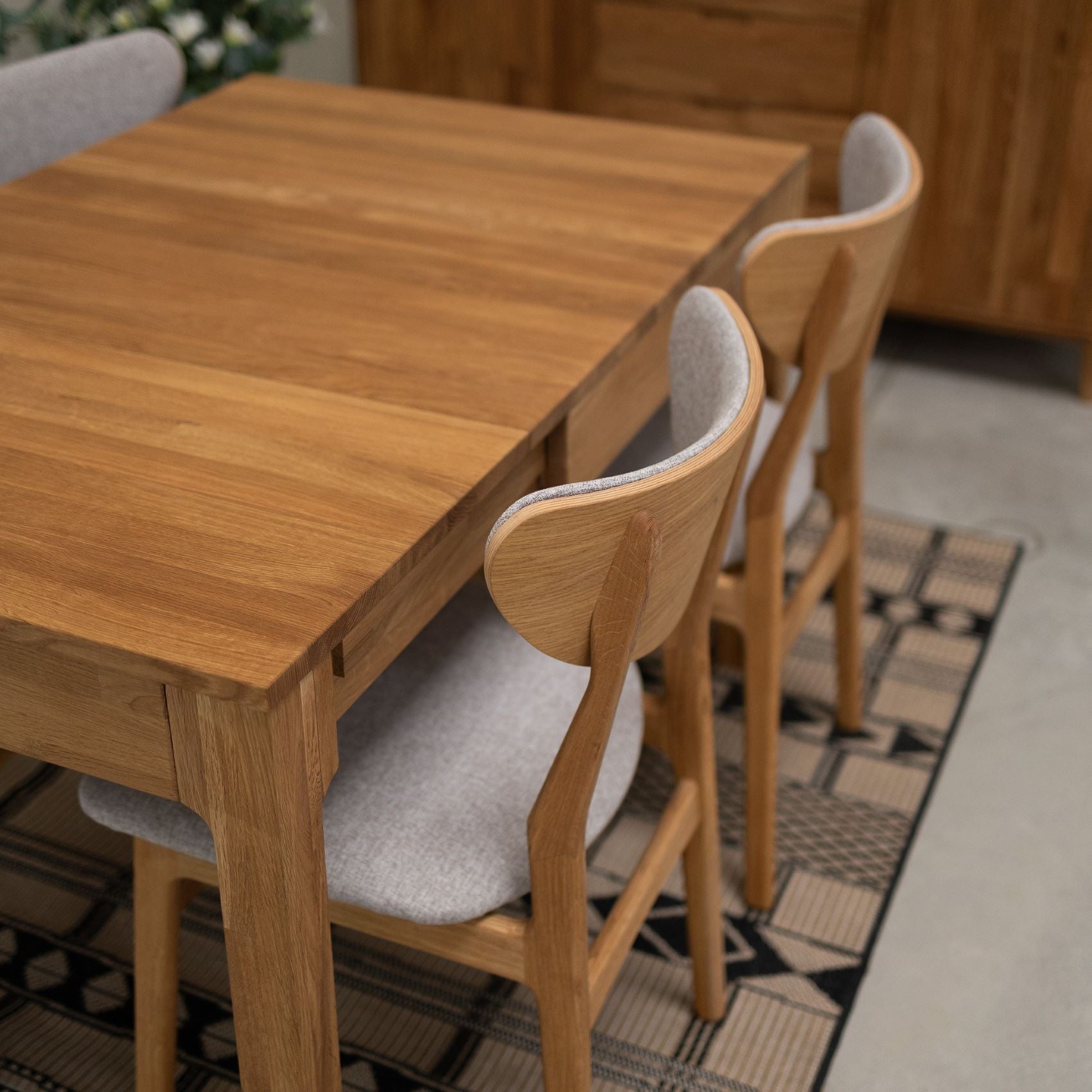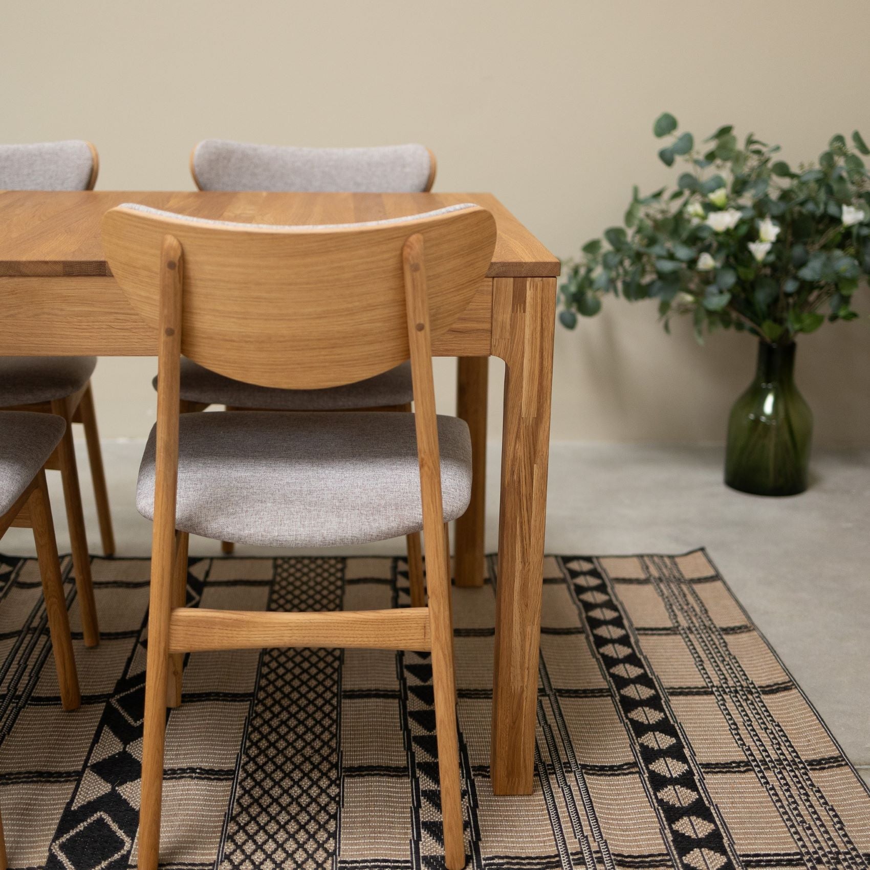 Fabriquée en chêne massif naturel, la chaise Maxwell se distingue par son allure douce et accueillante, mettant en valeur la beauté authentique du bois. Le revêtement en tissu gris clair, à la fois chic et apaisant, crée un contraste délicat et élégant avec le bois. Les lignes arrondies de la chaise ajoutent une dimension de confort t de convivialité.