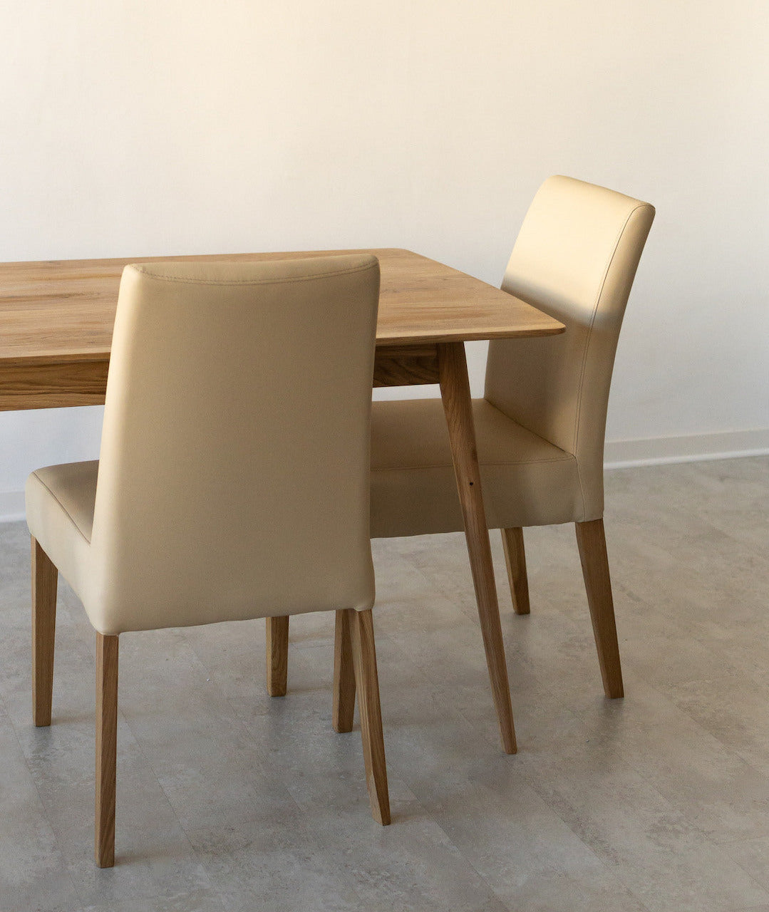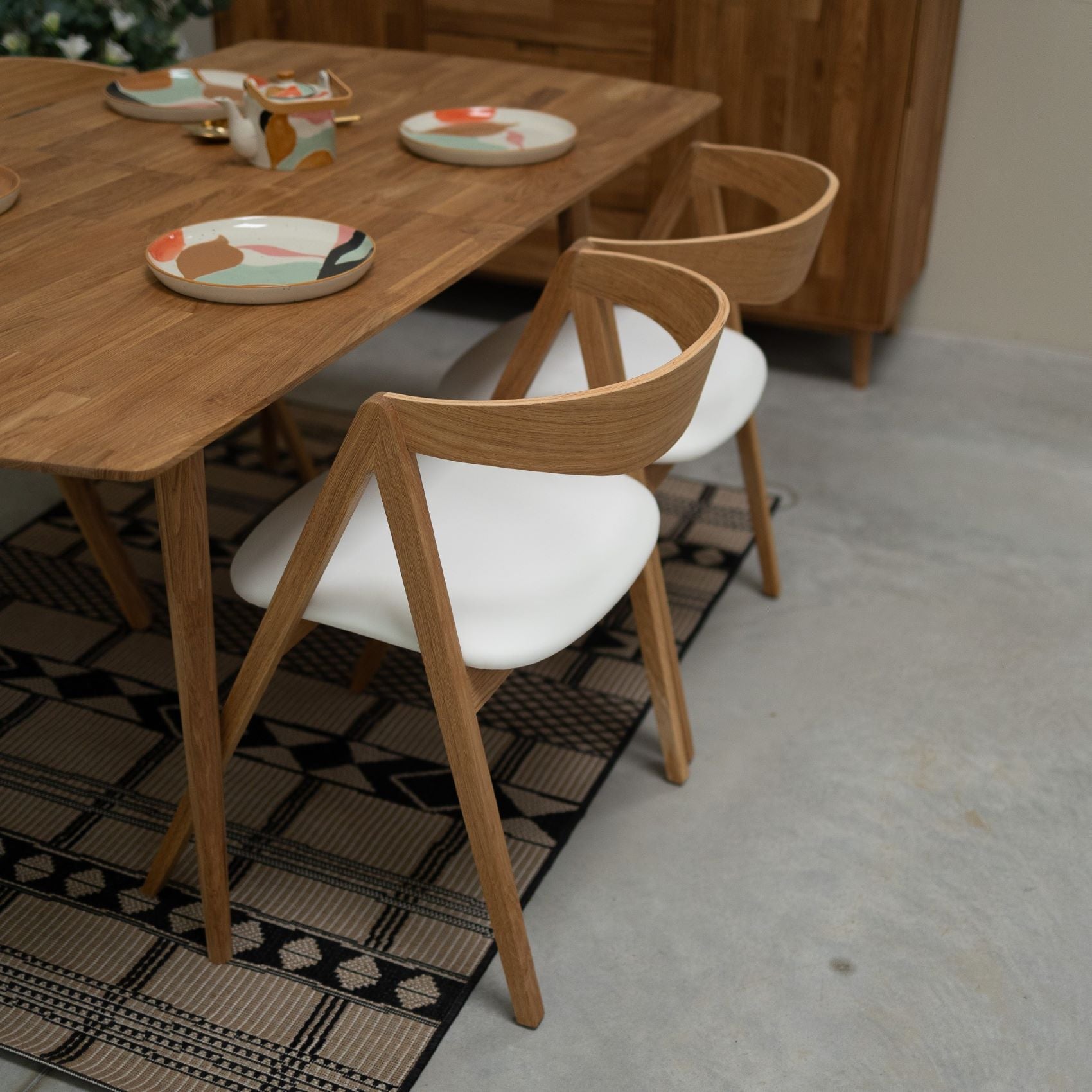 La chaise en bois massif de chêne naturel Oscar se distingue par son style scandinave à la fois sobre et raffiné. Le bois met en valeur la richesse du chêne, tandis que le simili cuir blanc apporte une touche de modernité et de fraîcheur. Son assise ergonomique et son dossier enveloppant assurent un confort remarquable. Les lignes épurées et les pieds légèrement évasés typiques du design scandinave confèrent à cette chaise une élégance discrète en faisant une pièce maîtresse idéale pour une salle à manger.