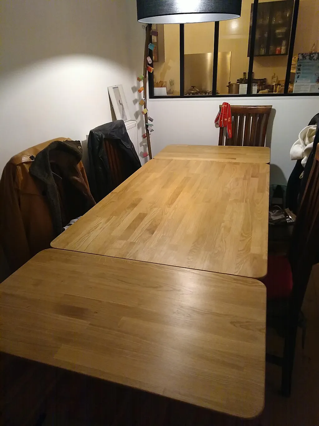 Avec 2 rallonges : Longueur 240 cm X Largeur 90 cm X Hauteur 75 cm.